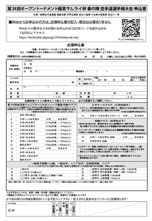※開催クラス、参加費、団体申込み書