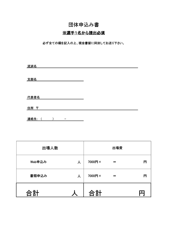 ※団体申込み書は現金書留に同封してお送り下さい
